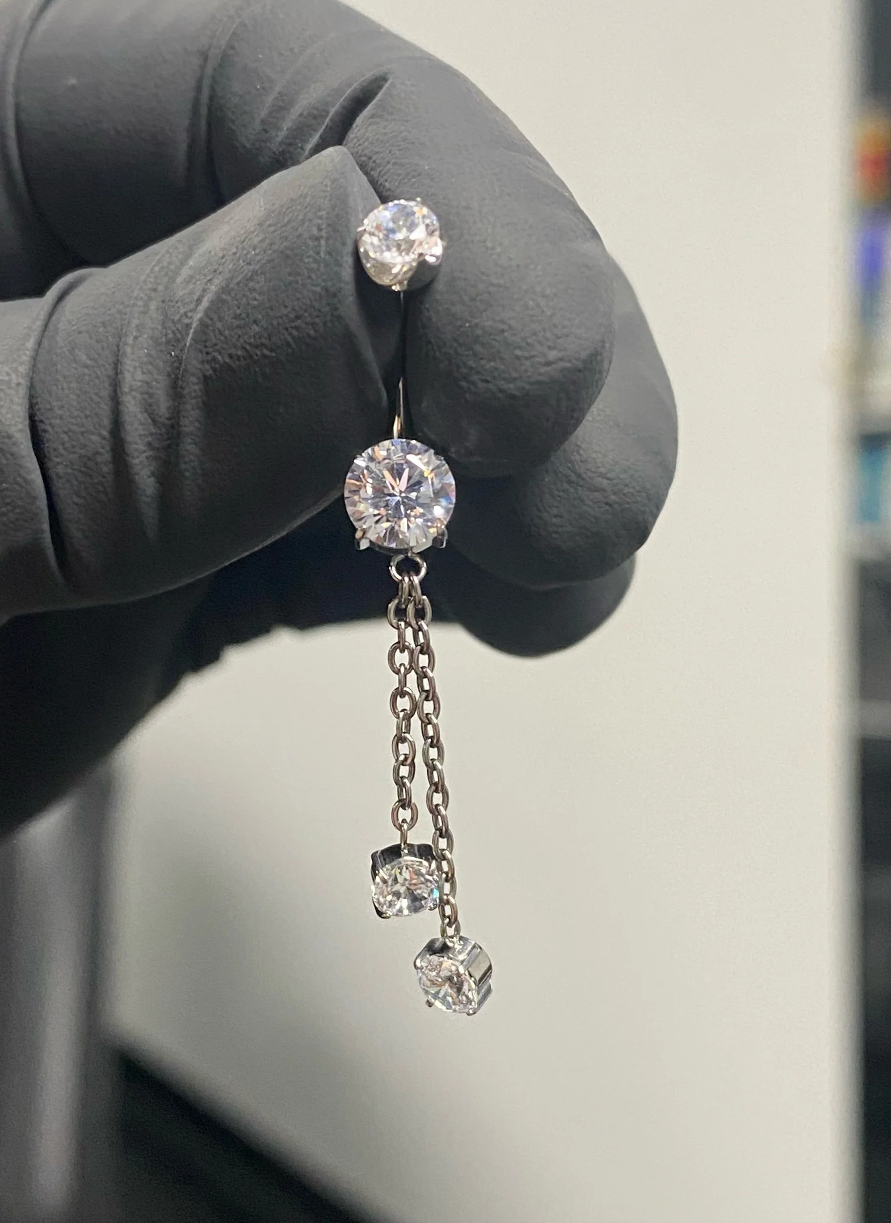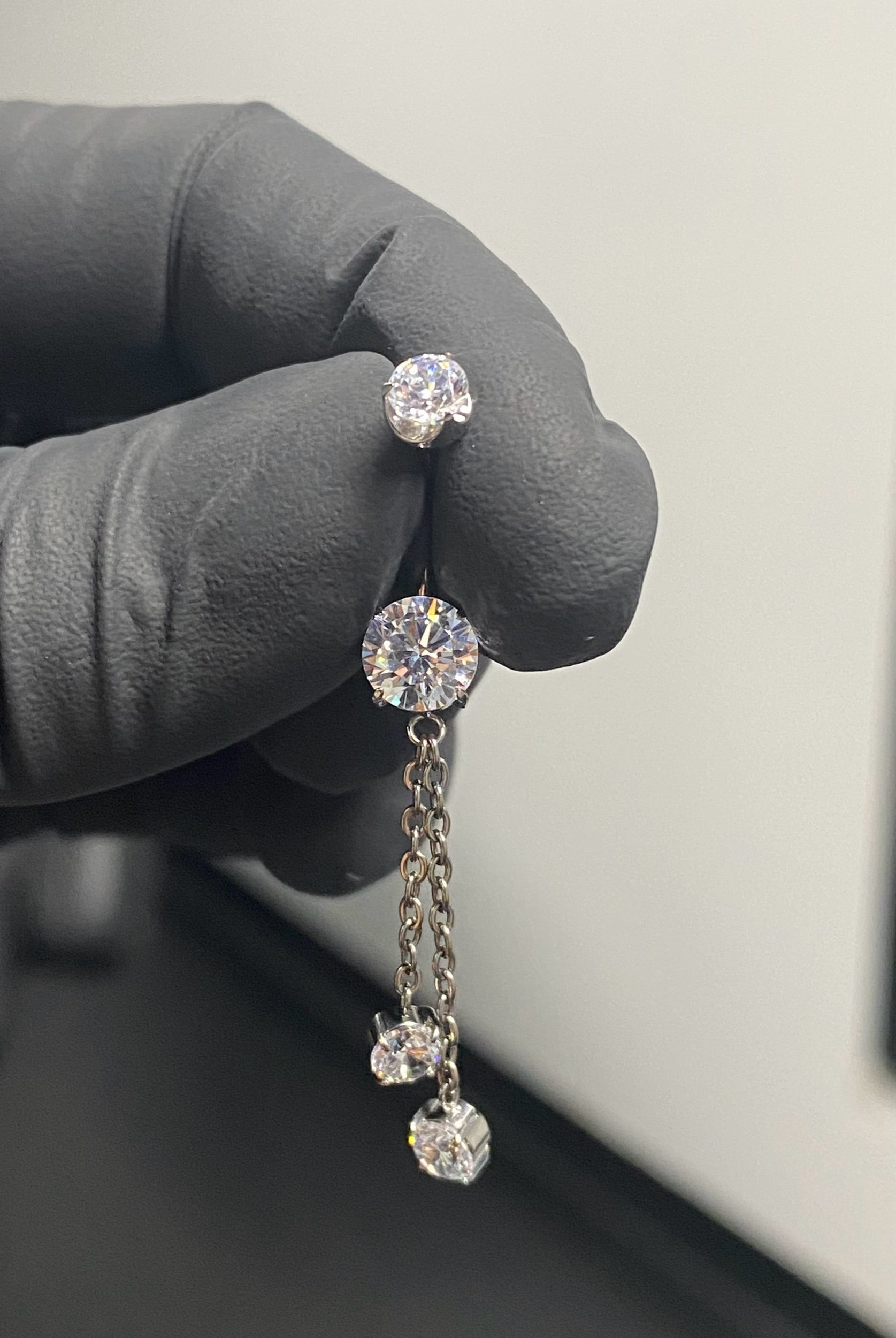 Titanium Gemstone Double Dangle Navel
