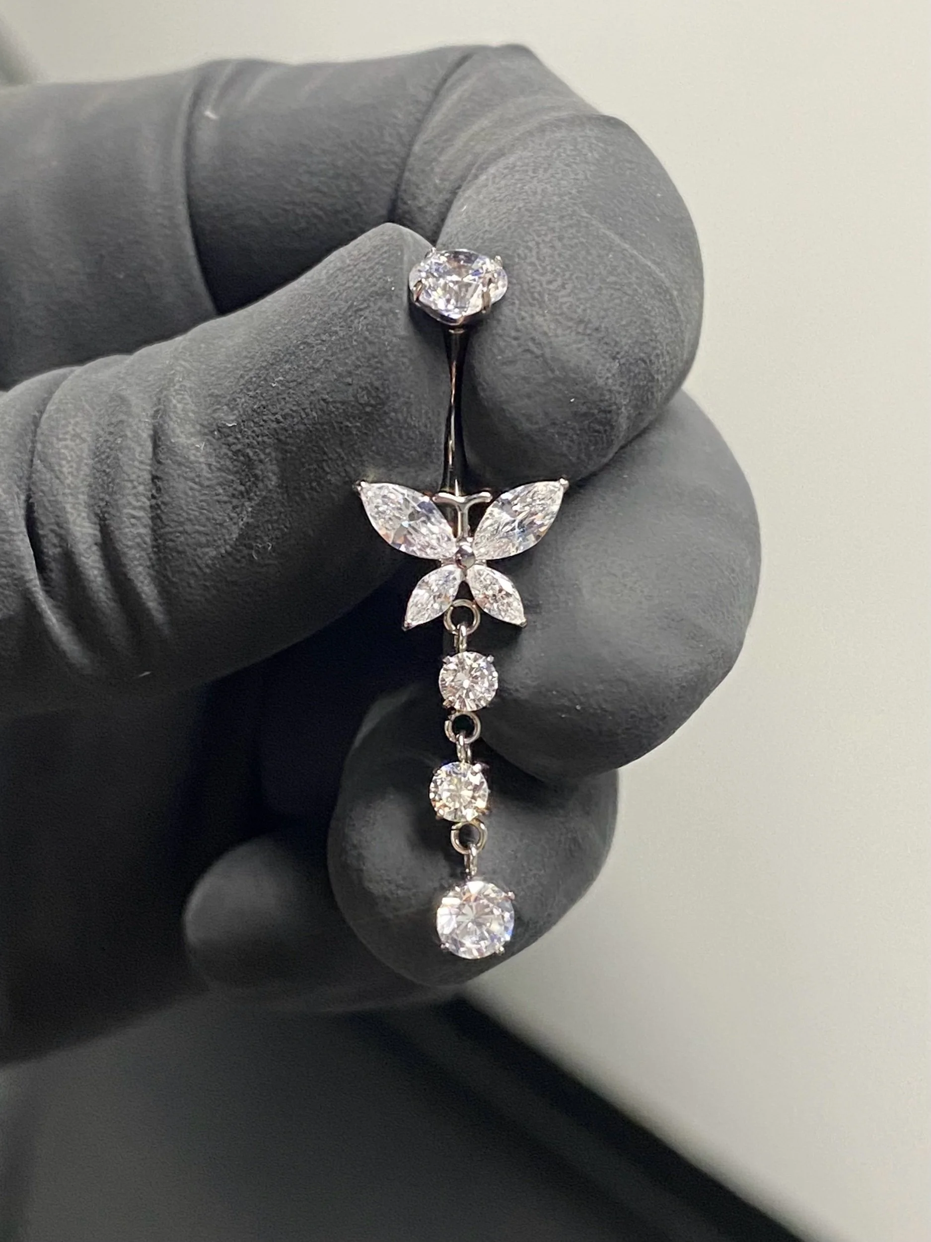 Titanium Butterfly Gemstone Dangle Navel Bar